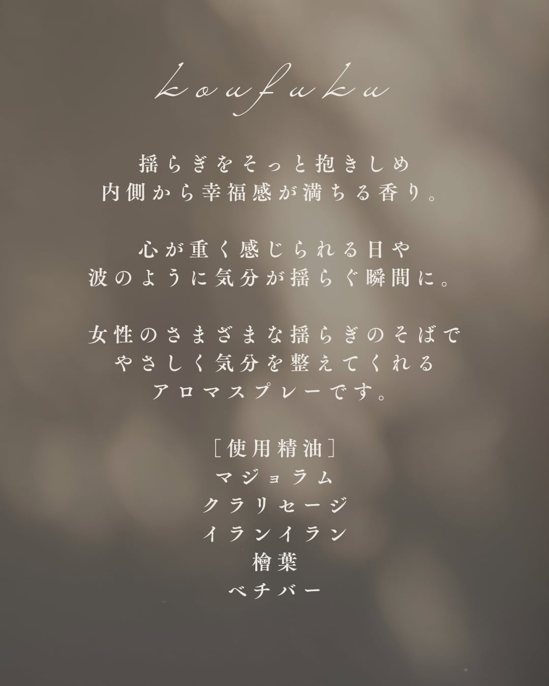 女性のさまざまな揺らぎのそばで、やさしく気分を整えてくれるアロマスプレーです。